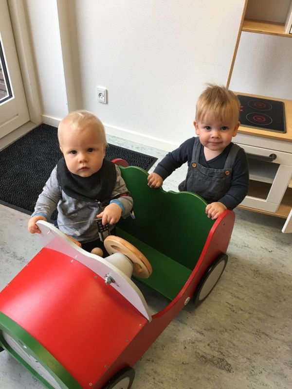 Vuggestuen holder til i den ene fløj af Bøgehaven - kun adskilt af en dør til børnehaven.